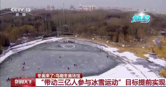 在北京奥林匹克公园,许多市民正在享受冰雪运动的乐趣,北京冬奥会给中国冰雪运动的发展注入了巨大的动力,“带动三亿人参与冰雪运动”目标已经提前实现。