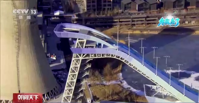 在首钢园群明湖畔,与四座冷却塔遗存交相辉映的,是为北京冬奥会新建的竞赛场馆——首钢滑雪大跳台。这是北京赛区唯一进行雪上项目比赛的场馆,164米长的赛道,最高点60米,厚厚的积雪已经均匀地覆盖在滑道表面。 “高颜值”的大跳台,设计理念源自敦煌壁画中传统的“飞天”造型,所以又被称为“雪飞天”,从侧面看去又像是一只灵动的水晶鞋。北京冬奥会期间,这里将进行单板滑雪大跳台和自由式滑雪大跳台两个项目的比赛,产生4枚金牌。这两项比赛考验的是运动员在腾空过程中,如何完成各种具有观赏性的高难度动作。很多观众朋友们熟悉的中国选手谷爱凌就将在这里向金牌发起冲击。