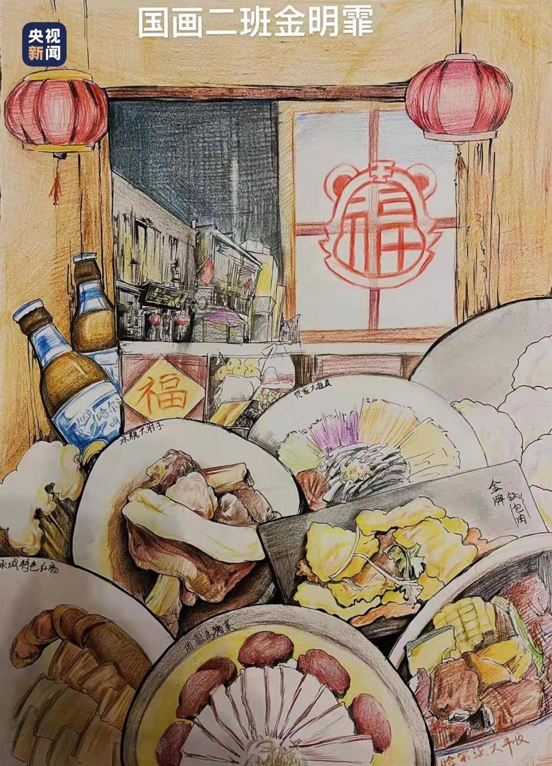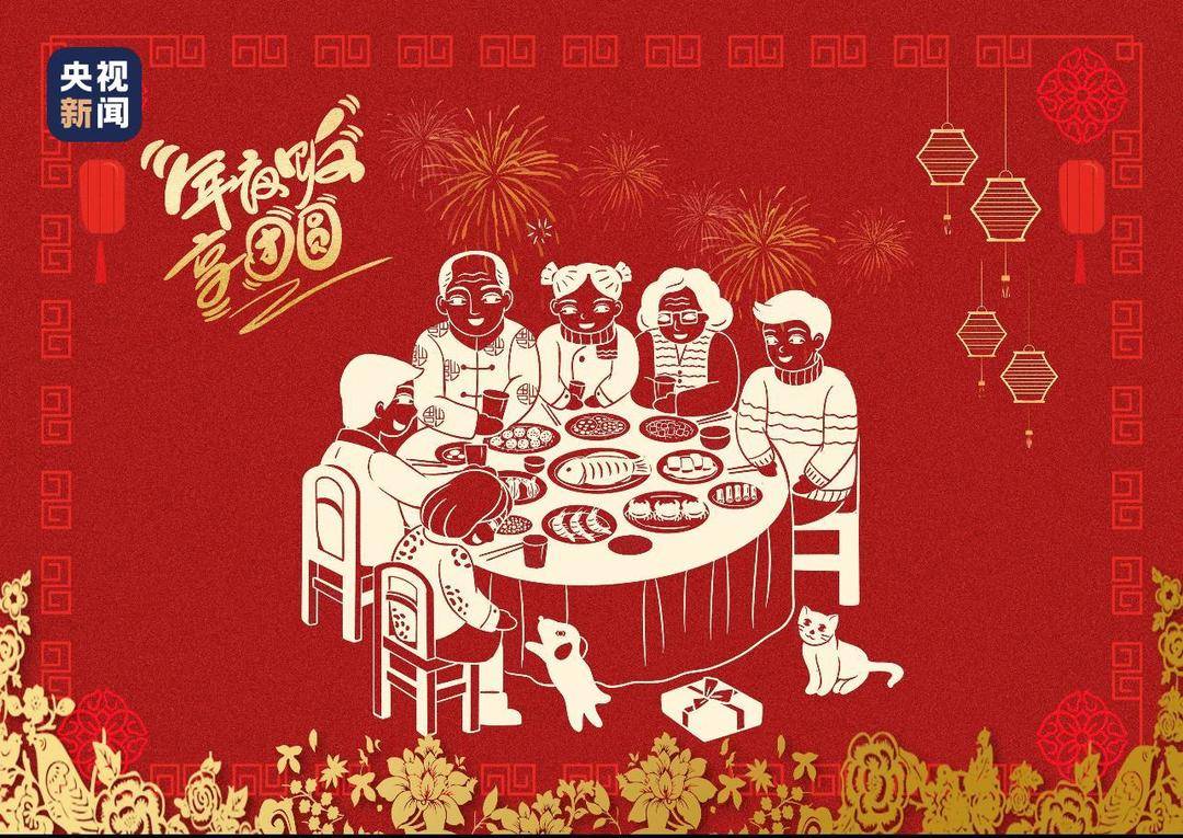 还有同学用剪纸的形式晒出家乡的年夜饭
