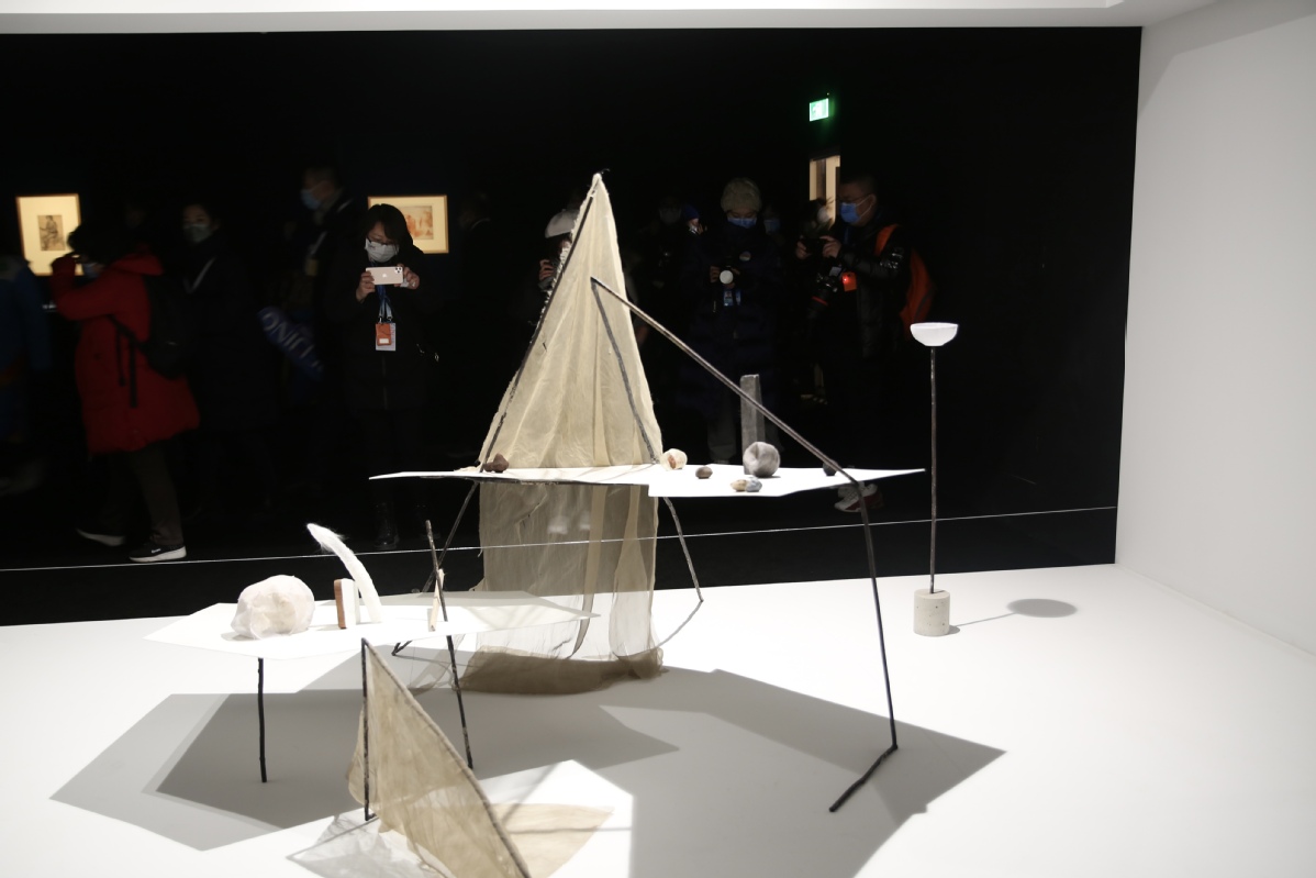 2月3日,媒体记者在木木美术馆拍摄展出的艺术品。中国日报记者 匡林华 摄
