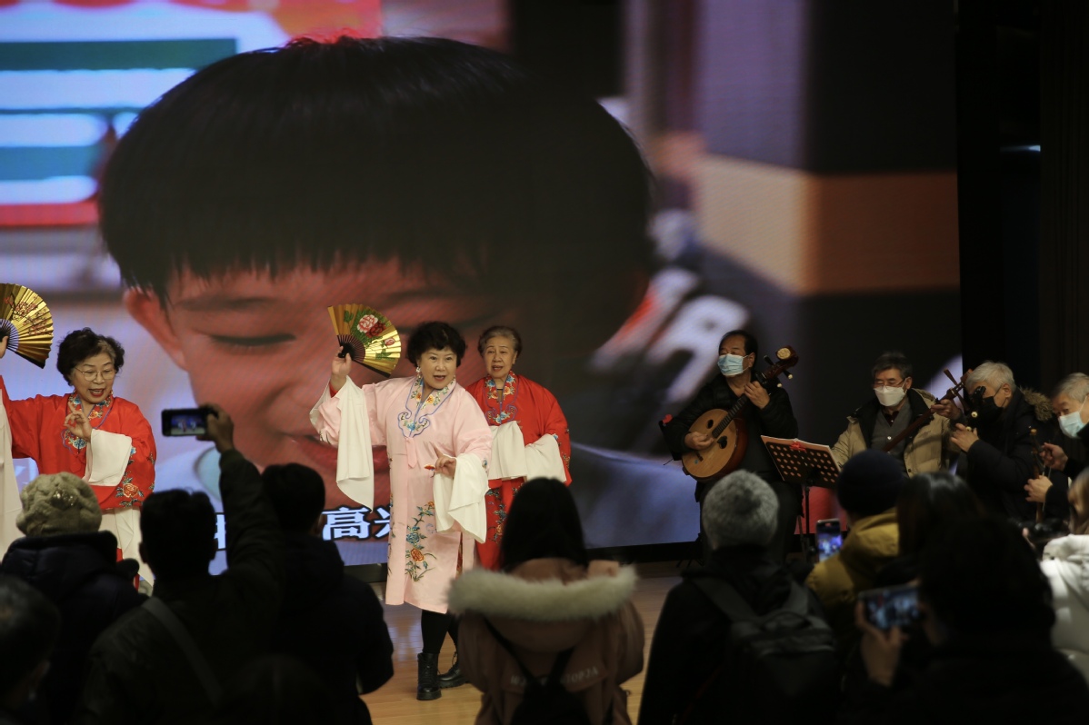2月3日,媒体记者在“美后肆时”景山市民文化中心拍摄社区文化活动。中国日报记者 匡林华 摄