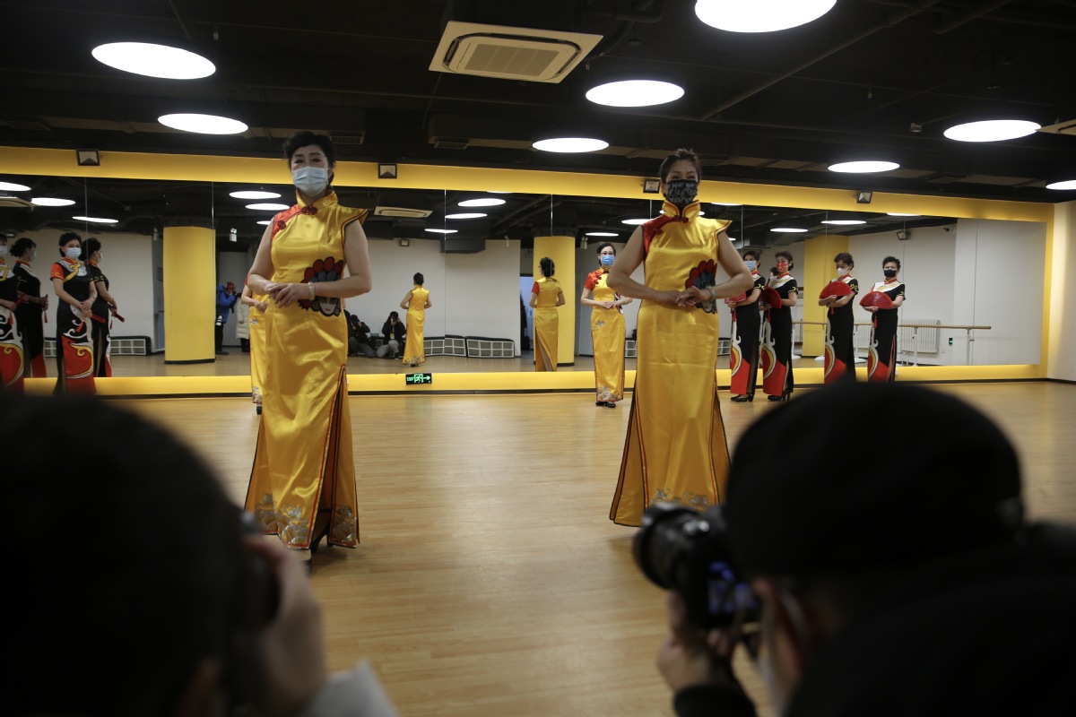 2月3日,媒体记者在“美后肆时”景山市民文化中心拍摄社区老年模特队展示活动。中国日报记者 匡林华 摄