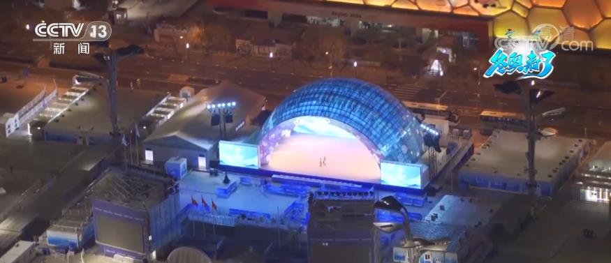 在“鸟巢”和“冰立方”之间,矗立着一座半圆形的“雪屋”。这是2022年冬奥会北京颁奖广场的主舞台。舞台顶部冰雪图案凸显冬奥特色。颁奖广场是冬奥会区别于夏奥会的重要文化特征。由于气候和赛场环境特殊,在冬奥会的比赛场地,通常只给获奖选手颁发纪念品,而颁发奖牌仪式则是在颁奖广场举行。北京冬奥会赛时,北京颁奖广场将运行14天,举办32场赛事的颁奖仪式,这里也将呈现获奖运动员的高光时刻。