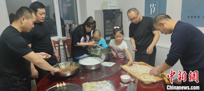 图为恩和哈达边境派出所民警和家属一起包饺子。 恩和哈达边境派出所供图