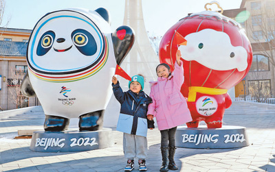 2月4日,北京冬奥会开幕,河北张家口崇礼的小朋友与北京冬奥会、冬残奥会吉祥物合影,为北京冬奥会喝彩。