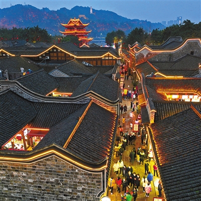 2月3日晚,在四川省宜宾市翠屏区冠英古街,前来游览的市民络绎不绝。