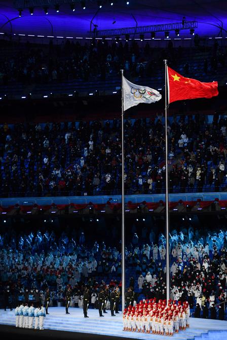 新华社北京2月5日电 (记者高萌、李丽、姬烨)2月4日晚22时许,奥林匹克会旗在国家体育场“鸟巢”再一次缓缓升起。