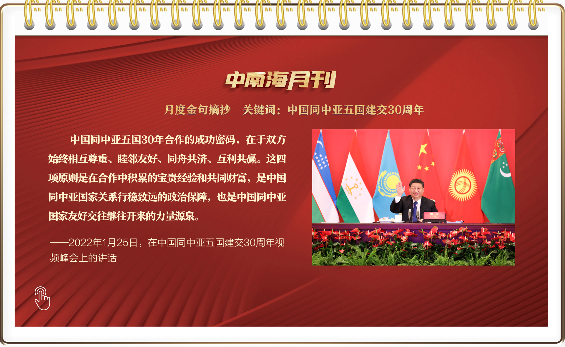 1月25日,习主席又在北京主持中国同中亚五国建交30周年视频峰会。