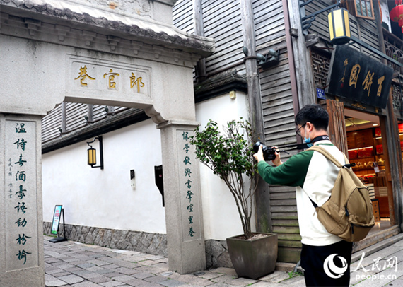 一位游客在拍摄郎官巷。人民网 林晓丽摄