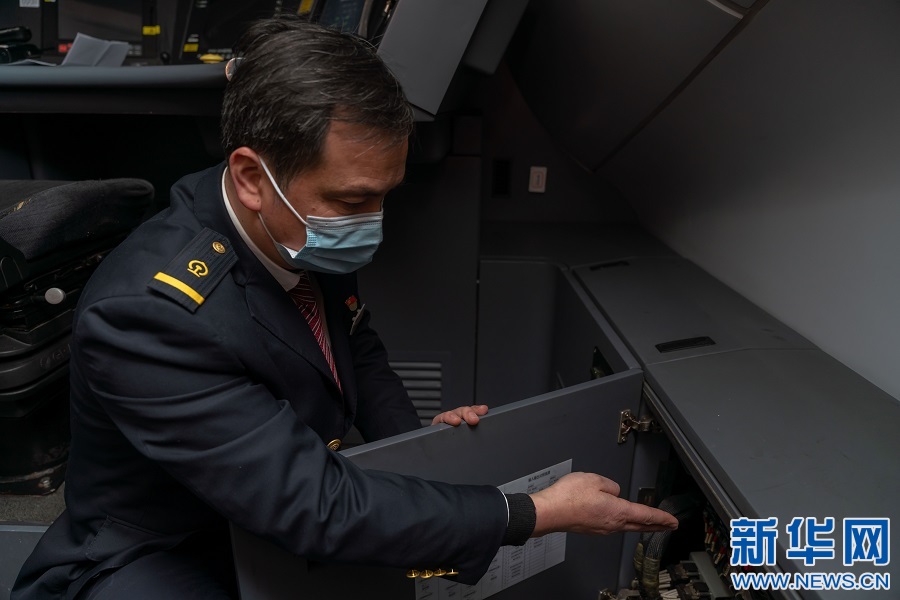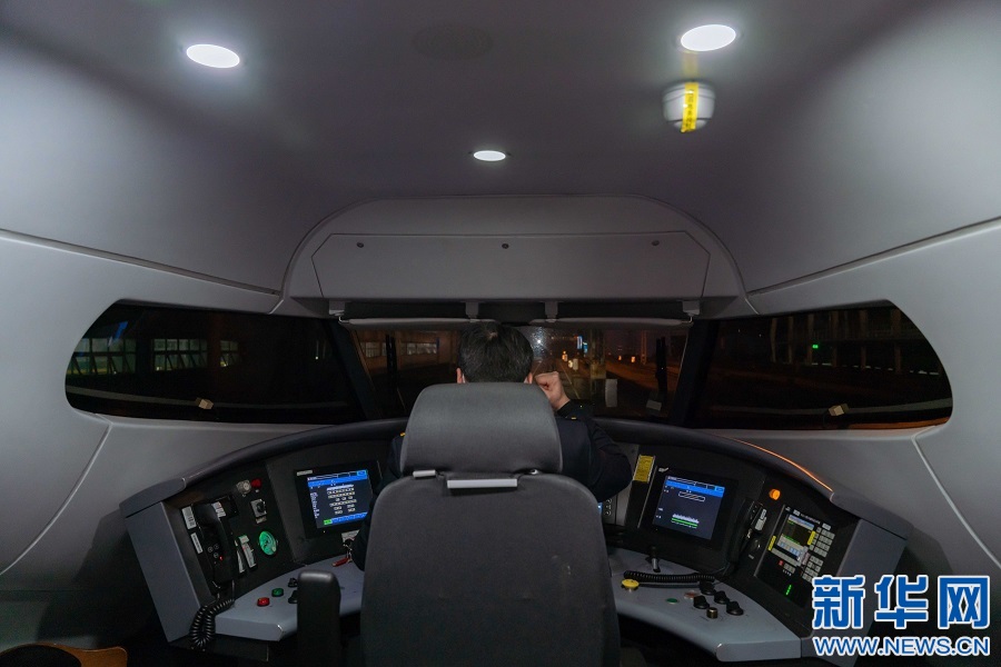 苏盛正在驾驶列车。新华网发 赵磊 摄