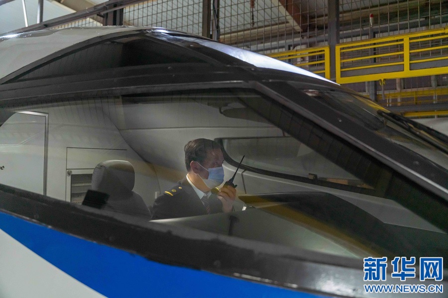 苏盛穿越动车列车厢进行换端试验。新华网发 赵磊 摄