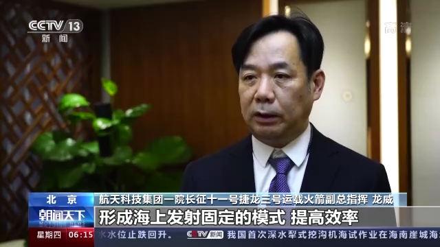 航天科技集团一院长征十一号捷龙三号运载火箭副总指挥 龙威:后续我们也想通过再多打几发,形成海上发射固定的模式,提高效率。