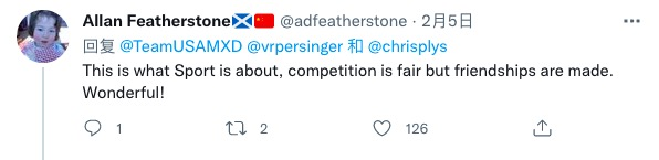 译文:这就是体育运动的意义,用公平的比赛结下友谊!太棒了!