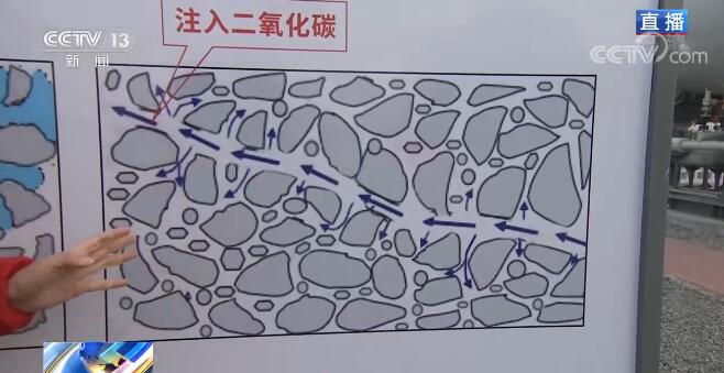 总台记者 鲁子奇:钻进地下的二氧化碳发挥两个作用:一是进入岩石缝隙,把里面的油给“挤出来”;二是与油混合,让油体积膨胀,使得原油流动性更好,更容易开采出来。可以说,通过利用液态二氧化碳,原本一些难以开采的油层也被我们成功“解锁”。