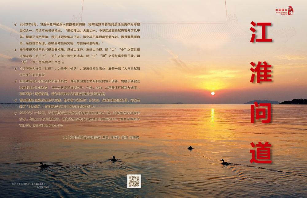 如今,长江之上,从滥捕滥捞到“十年禁渔”;淮河之畔,从人水争地到人退水进;巢湖之侧,蓝藻治理如火如荼……江淮问道千百年,今日的回答是:实现“人民保护长江、长江造福人民”的良性循环,早日重现“一江碧水向东流”的胜景。