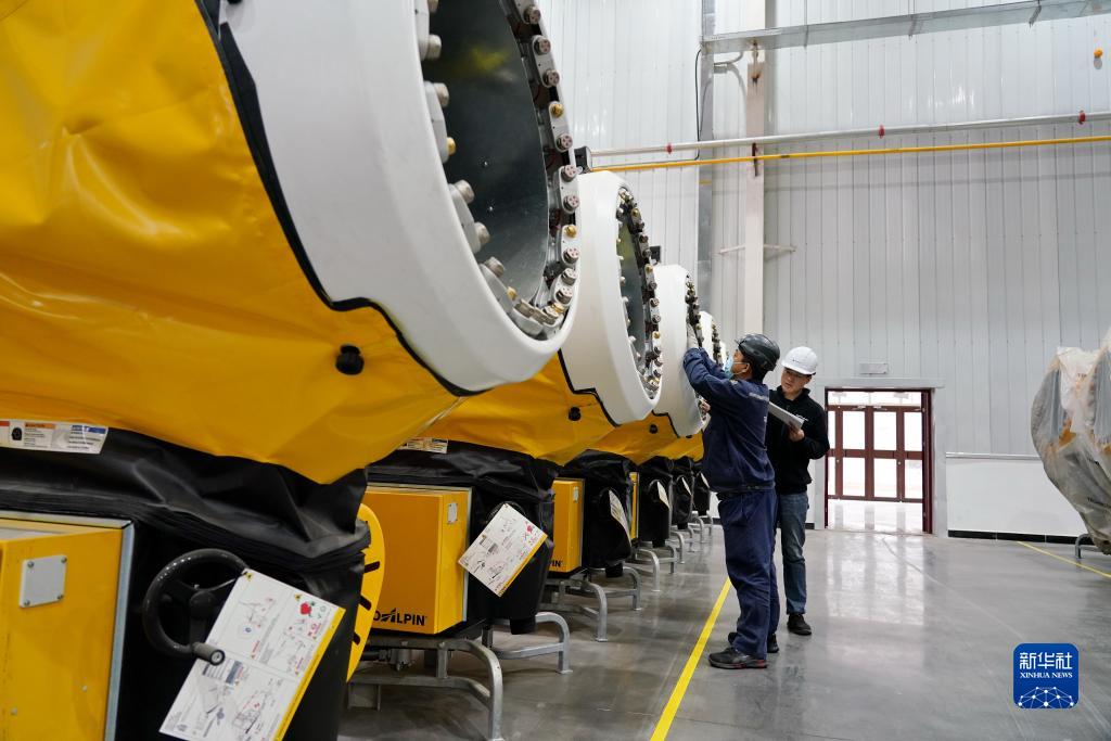 2021年5月20日,天冰冰雪设备张家口有限公司工人在厂房内保养检修造雪设备。新华社记者牟宇摄