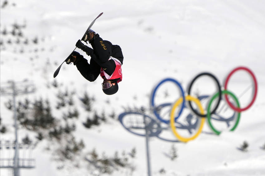 2022北京冬奥会单板滑雪男子坡面障碍技巧资格赛,中国选手出战。图片来源:视觉中国