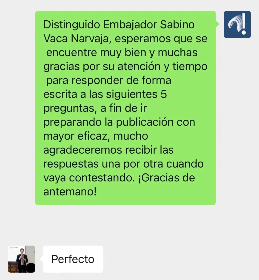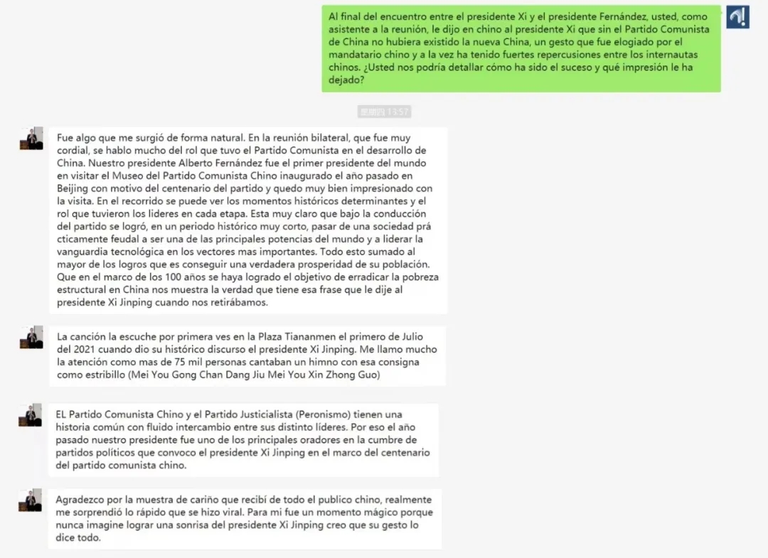 为了了解背后的故事,谭主给刚刚结束行程的牛望道大使发送了微信,希望进行书面采访,他爽快答复——Perfecto(西班牙语,译为“完美”)。
