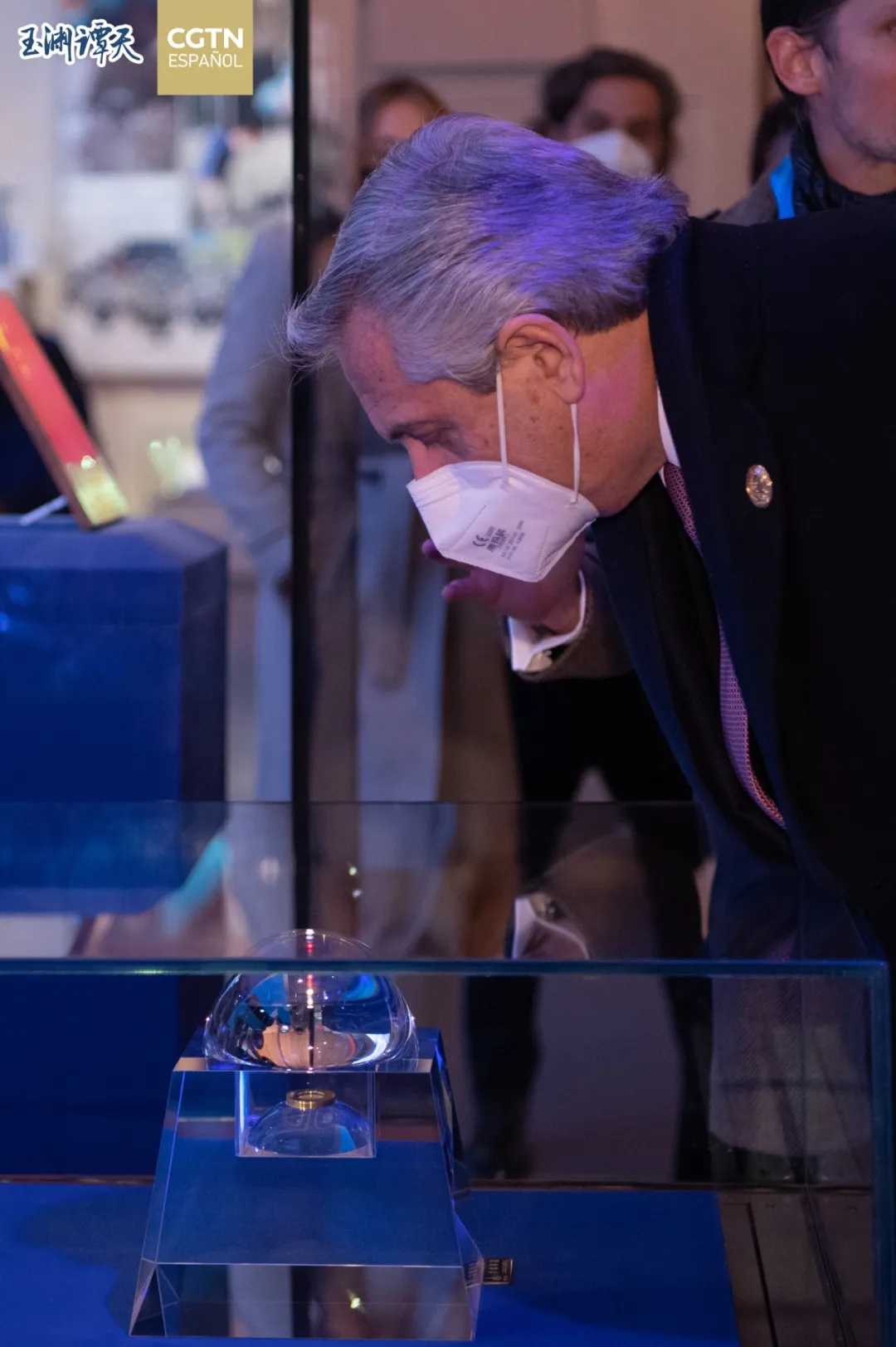 ▲阿根廷总统费尔南德斯参观中国共产党历史展览馆月壤样品