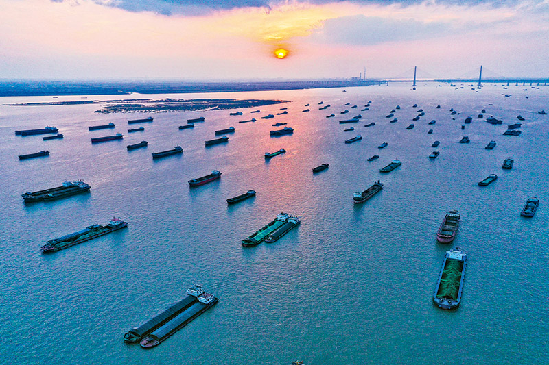 向江向海向未来,江苏省南通市的高质量发展彰显长三角一体化发展新气象。这是2021年10月25日无人机拍摄的长江南通段。 新华社记者 李博/摄