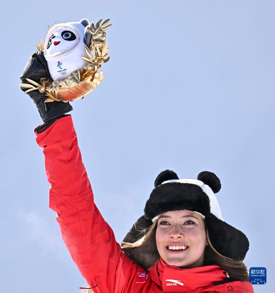 当日,北京2022年冬奥会自由式滑雪女子U型场地技巧决赛在张家口云顶滑雪公园举行。中国队选手谷爱凌夺得此项目金牌。