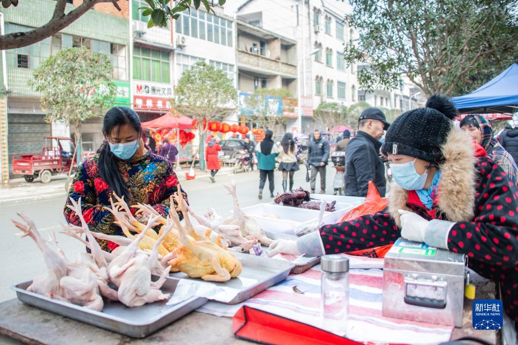 1月29日,在湖北省随县柳林镇主街道上,人们在选购年货。新华社发(伍志尊 摄)