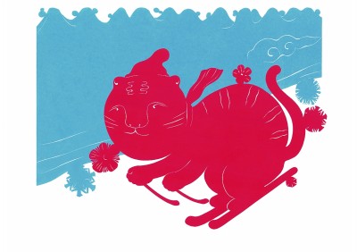 如果说中华优秀传统文化是剪纸艺术创作的根基与灵魂,那么当代艺术精神和现代设计理念便成为剪纸艺术发展的动力引擎。幽默诙谐的卡通形象、富有时尚感的视觉元素、新颖别致的构图方式……在多元文化相互交融的新媒体时代,剪纸艺术的面貌也日趋年轻化、国际化。笔者创作的冬奥系列剪纸作品,融合了冰雪运动与寅虎的双重意象。在虎的形象设计方面,如何将冰雪运动的夸张动态与动物的肢体结构及形态自然结合,是创作的难点。我在精细刻画虎的形态、花纹等自然特征的基础上,以圆润的肢体造型实现虎与人的动态转化,并让各式雪花剪影点缀虎躯,打造出富于童趣又动感十足的“小虎子运动员”形象,背景则运用中国戏曲舞台的构成方式,概括地呈现出通透而富有古韵的空间氛围。这套应邀展陈在北京冬奥会张家口冬奥村的剪纸作品,不仅烘托出热烈喜庆的氛围,更传达出对北京冬奥会运动健儿们“圆梦在今朝”的浓浓祝福。此外,卢淑容的《冬奥情怀》以动漫造型语言塑造人物,并辅以传统花卉、祥云等纹样,传统与现代的相互碰撞使得作品充满视觉张力;官红艳的《和谐冬奥》运用现代艺术语言,以高饱和度的色彩营造作品风格基调,并对运动员的动态进行适度夸张处理,时尚感十足。艺术家们在坚守传统的基础上大胆发挥想象力与创造力,使作品在记录生活、讴歌时代的同时,展现出独特的艺术个性,多维度的创作探索为剪纸艺术的发展注入了蓬勃的生命力。