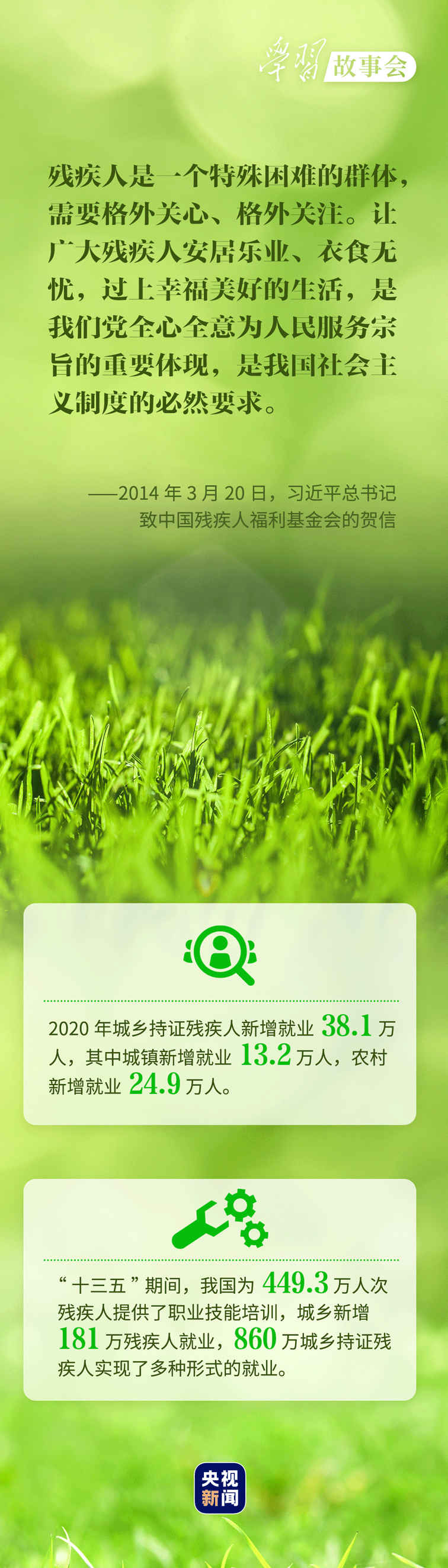 党的十八大以来,习近平总书记对残疾人格外关心、高度关爱。他强调,“健全人可以活出精彩的人生,残疾人也可以活出精彩的人生”,号召全社会尊重并帮助残疾人。