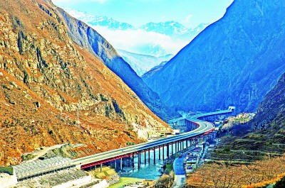 “超级工程”让天堑变通途,助力西部迈上高质量发展之路,为共同富裕提供重要支撑。图为起于四川阿坝藏族羌族自治州汶川县,止于马尔康市的汶马高速公路克枯大桥。新华社发