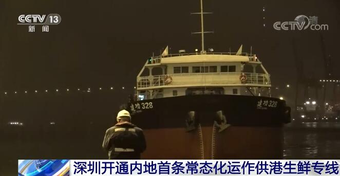 21日,深圳开通内地首条常态化运作供港生鲜专线,首批约200吨供港鲜活商品当天夜间抵达香港。