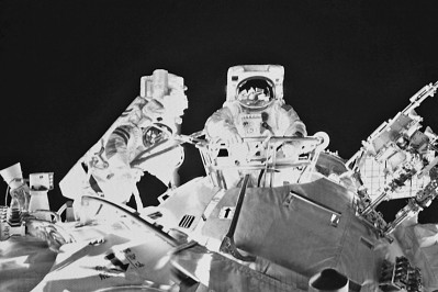 神舟十三号航天员首次出舱活动。新华社发