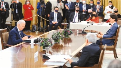2021年11月18日,美国、加拿大和墨西哥三国领导人在华盛顿举行会谈。
