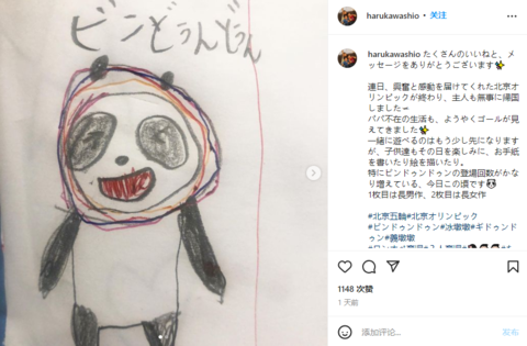 冬奥会顺利闭幕后,“义墩墩”于24日回到日本。他的妻子鹫尾春果24日在社交媒体表示:“接连带给大家兴奋与感动的北京冬奥结束,我丈夫也顺利回到家中。”鹫尾还高兴地表示:“孩子们没有爸爸的日子终于结束了”“孩子们每天都期待着这天,又写信又画画的”。鹫尾特别提到,7岁的女儿和5岁的儿子“深受狂热喜爱冰墩墩的爸爸影响”,经常画“冰墩墩”。
