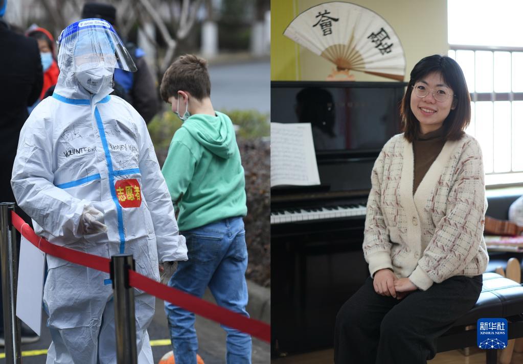 拼版照片:左图为在苏州工业园区西湖社区青湖丽苑小区核酸采样点,护士朱明星(前)穿上隔离服,准备上门进行核酸采样(2月22日新华社记者季春鹏摄);右图为朱明星在酒店房间为苏州人民和抗疫人员“比心加油”(2月22日摄,受访者提供)。朱明星2008年经历过汶川大地震,她说,“我想尽自己的绵薄之力,报答社会。我一个人是微不足道的,但是大家齐心协力,点点星火定将汇聚成必胜光芒。”朱明星说。苏州本轮疫情发生以来,广大医护人员、社区工作人员、志愿者坚守岗位,不舍昼夜,奋战在抗疫一线,与病毒较量,与时间赛跑,汇聚成抗击疫情的磅礴力量。新华社发