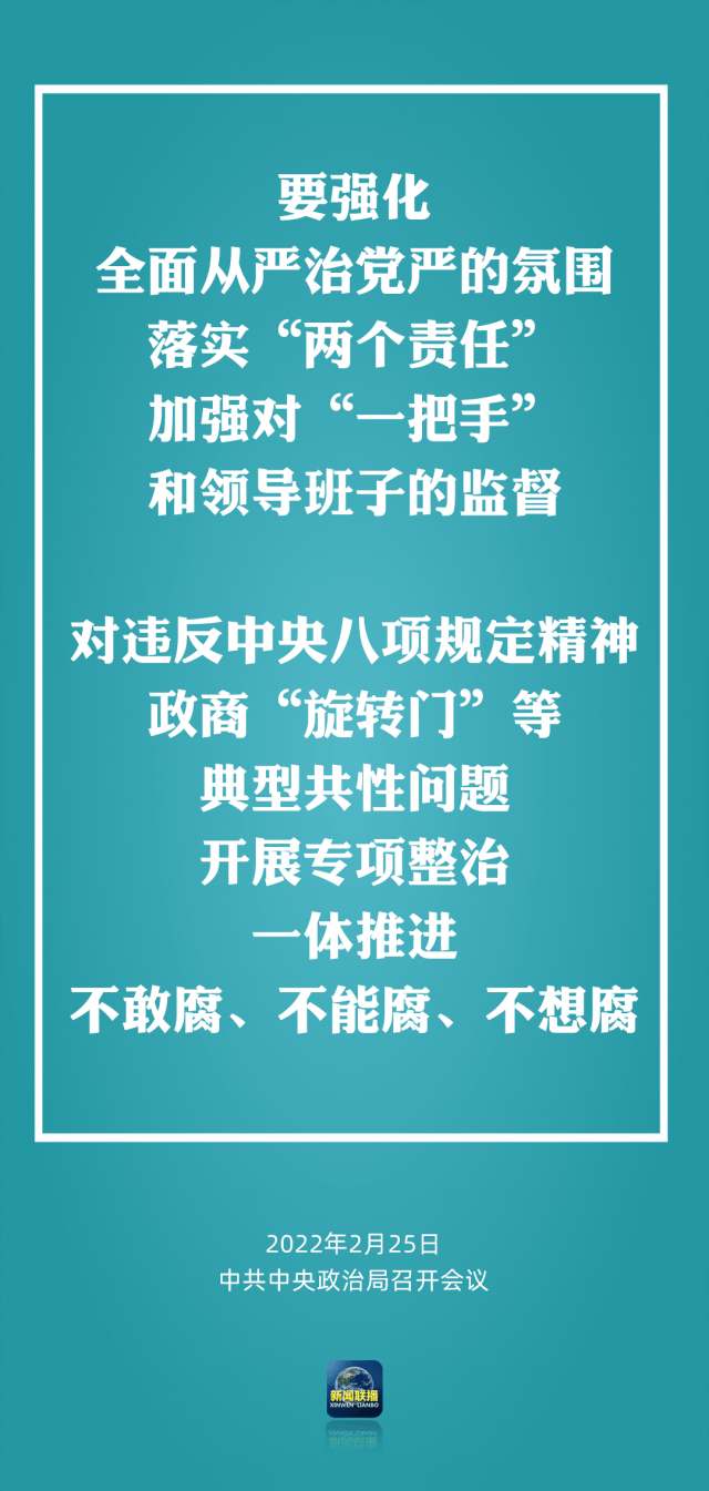 中共中央政治局2月25日召开会议,讨论国务院拟提请第十三届全国人民代表大会第五次会议审议的《政府工作报告》稿,审议《关于十九届中央第八轮巡视情况的综合报告》和《关于2021年中央巡视工作领导小组重点工作情况的报告》。中共中央总书记习近平主持会议。