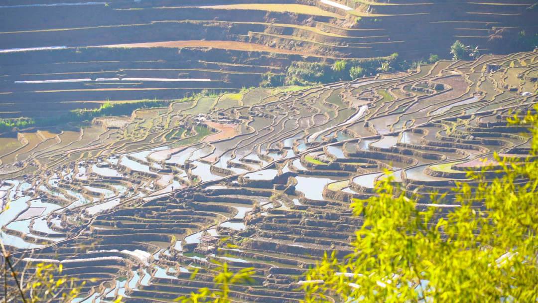 2月23日清晨,金黄金黄的太阳懒懒的爬上了东边的山头,初春的哀牢山被照射得终于睁开了眼,薄雾间层层叠叠的“镜子”也扯下了神秘的面纱。