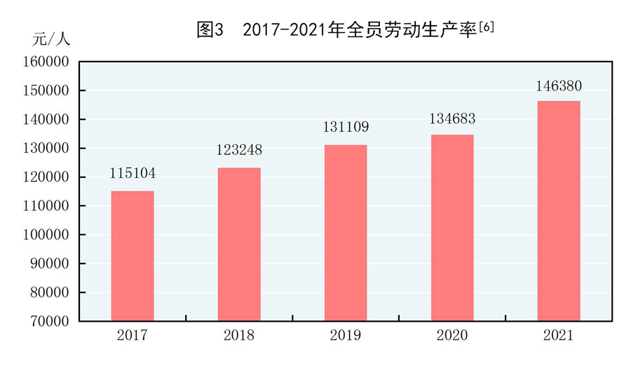[5]全员劳动生产率为国内生产总值(按2020年价格计算)与全部就业人员的比率,根据第七次全国人口普查结果对历史数据进行了修订。