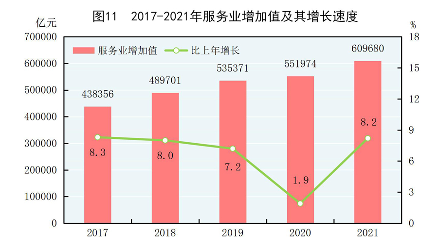 [17]战略性新兴服务业包括新一代信息技术产业、高端装备制造产业、新材料产业、生物产业、新能源汽车产业、新能源产业、节能环保产业和数字创意产业等八大产业中的服务业相关行业,以及新技术与创新创业等相关服务业。2021年战略性新兴服务业企业营业收入增速按可比口径计算。