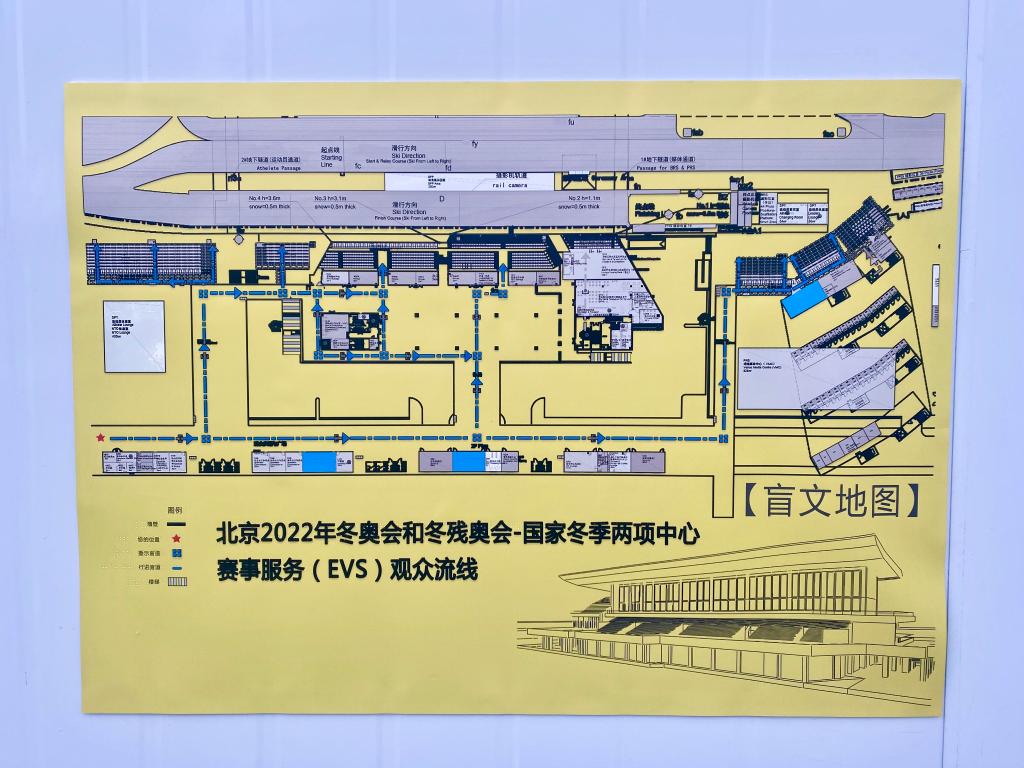 在张家口赛区国家冬季两项中心,这里将承办残奥越野滑雪、残奥冬季两项两个大项的比赛。冬季两项有视障组运动员参加比赛,场馆准备了盲文阅读材料、可触摸式盲文地图,为视障人士提供信息无障碍服务,方便他们了解场馆及竞赛相关信息。