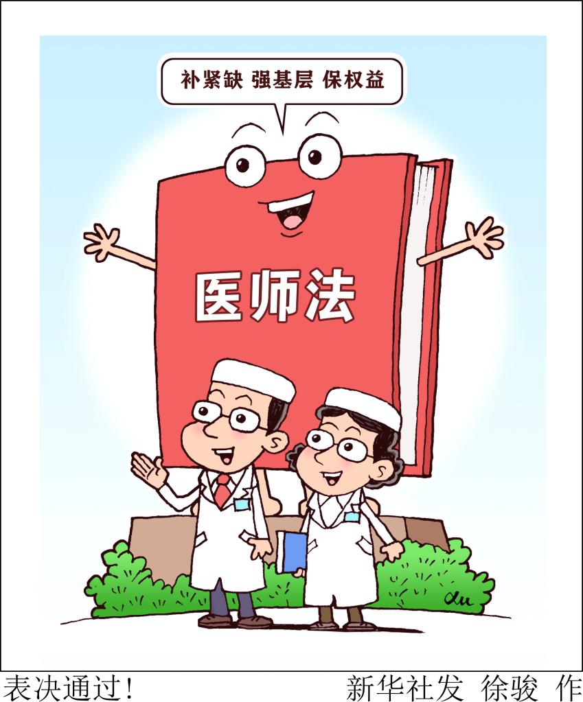 医师是护佑人民健康的守门人。十三届全国人大常委会第三十次会议2021年8月20日表决通过的医师法,于2022年3月1日起施行。新华社发 徐骏 作