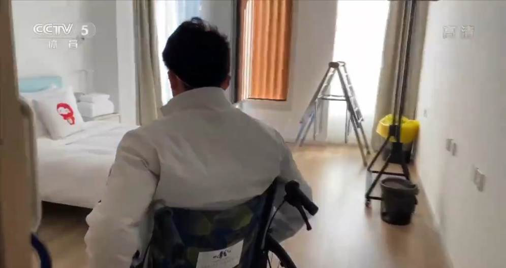 走廊和室内地面使用了防滑材料,房间内部空间便于轮椅回转和通行;几乎所有的门都是单臂可以进行操作的推拉门,卫生间配备了无障碍卫生和淋浴设施,有安全抓杆、淋浴凳、高低位挂钩、低位的淋浴花洒、置物架等生活设施;卧室内,床脚相对于冬奥会期间降低了10公分,便于坐轮椅的运动员上下床;床头的抱枕一面饰有北京冬残奥会会徽“飞跃”,另一面是北京冬残奥会吉祥物“雪容融”,这也是送给运动员的一份礼物。