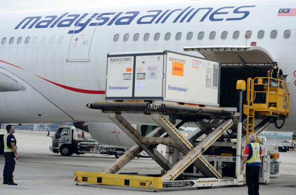 2021年8月20日,首批中国康希诺新冠疫苗运抵马来西亚吉隆坡国际机场。(新华社发,马来西亚科学、工艺和创新部供图)