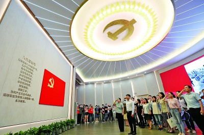 党员在上海中共一大纪念馆重温入党誓词。新华社发