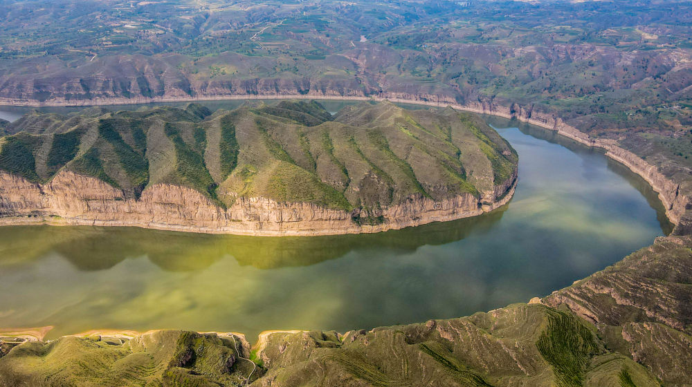 ↑这是蒙晋陕黄河大峡谷景色(无人机照片,2021年7月21日摄)。