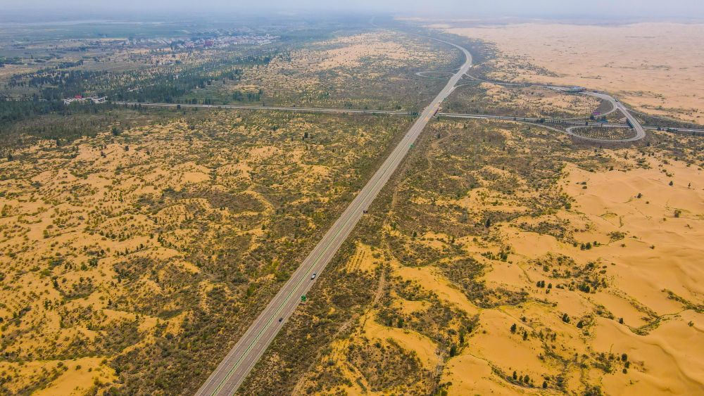 ↑这是治理后的内蒙古库布其沙漠景色(无人机照片,2021年7月22日摄)。