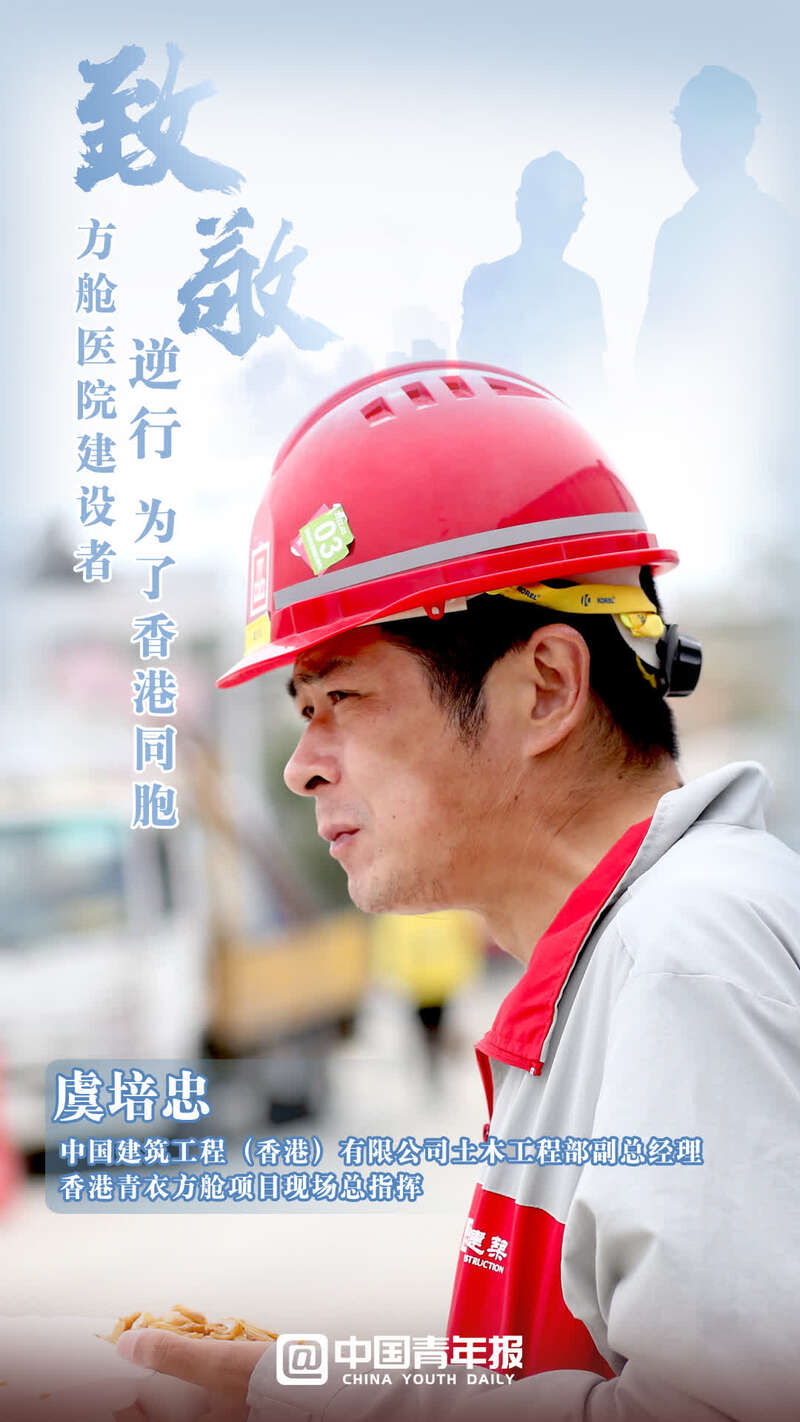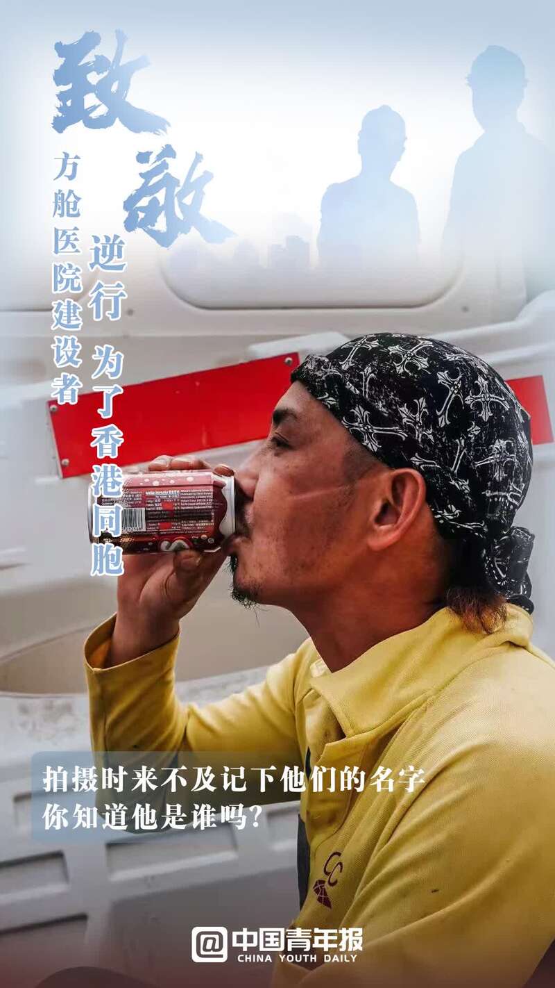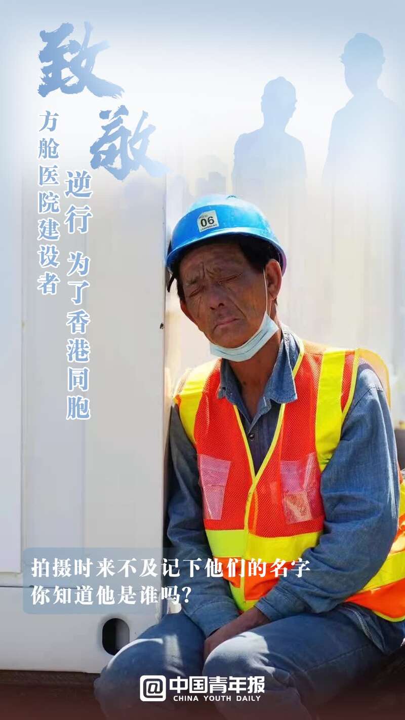 中国青年报客户端北京3月9日电(中青报·中青网记者 宁迪 金卓 制图:马群 拍摄:孟晓白)日晒雨淋间,戴着口罩的脸,捂成了两种颜色;双耳后侧,口罩勒痕反复摩擦,出血后留下了结痂;站在户外,手上捧着盒饭,眼睛望向的却是工地的进度;任何一处有支撑的物体,都能成为他们累极了的依靠。这群人中,有内地员工,也有香港员工,更有00后……面临香港不断攀升的新冠确诊人数,他们甚至来不及与家人告别,就奔赴工地,披星戴月赶建出一座座中央援港方舱医院。在这里,建设者只有一个共同的目标——抢救生命,建设希望。致敬,辛苦!
