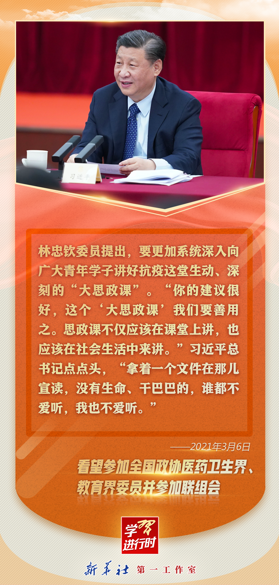 ——2021年3月6日,在看望参加全国政协十三届四次会议的医药卫生界、教育界委员并参加联组会时的讲话