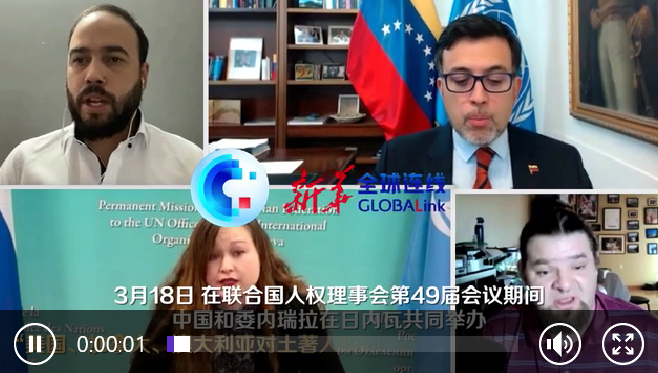 3月18日,在联合国人权理事会第49届会议期间,中国和委内瑞拉在日内瓦共同举办“美国、加拿大、澳大利亚对土著人权利的系统性侵犯”主题视频边会。驻日内瓦外交官、非政府组织代表、专家、媒体记者等150余人在线参会。