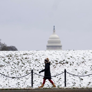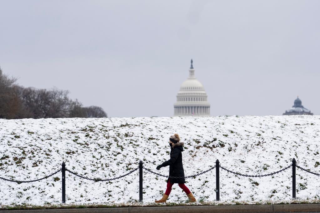 3月12日,在美国首都华盛顿,一名女子从国会大厦附近走过。(新华社记者刘杰摄)