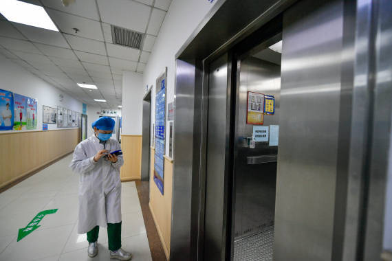 3月19日,刚刚回到休息室的马晋收到同事发来的信息后快速走回检测基地。(新华社记者孙凡越摄)